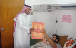 نظم قسم الخدمة الاجتماعية والنفسية بمستشفى الأمير سلمان بن عبدالعزيز حفل المعايدة للمرضى المنومين بمناسبة عيد الفطر المبارك وبحضور مدير مستشفى الأمير سلمان بن عبدالعزيز بالنيابة الدكتور خلف العنزي والأستاذ محمد الشهري مساعد المدير العام للشؤون الإدارية والمالية ومدير الخدمات الطبية بالنيابة الدكتور حسن عبدالواسع حيث استقبل الدكتور خلف المهنئين بالعيد في مكتبه وقدم لهم التهاني والتبريكات. كما قام قسم الخدمة الاجتماعية والنفسية النسائية بتقديم الورود والهدايا على أقسام التنويم النسائية والأطفال.. ثم قام الدكتور خلف ومرافقوه بزيارة المرضى المنومين بالأقسام الداخلية.