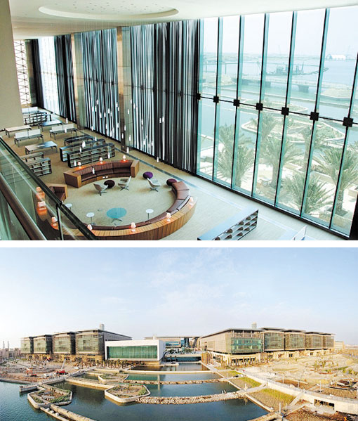 أما الجزء الأكبر فإنه يتألف من مجمل مجموعة مطبوعات المكتبة من المطبوعات الرقمية، التي تركز بالدرجة الأولى على العلوم، والهندسة، والتكنولوجيا، إلى جانب مجموعة متوسطة الحجم من الكتب المطبوعة. وقد بدأت المكتبة بمجموعة من الكتب تبلغ أكثر من 15000 كتاب من الكتب المطبوعة والرقمية والاشتراك في 1200 مجلة علمية (منها 1000 مجلة إلكترونية) إضافة إلى 50 قاعدة من قواعد بيانات البحوث على الإنترنت. وعندما تبلغ المكتبة حد الاكتمال، في عام 2013، سيكون لديها أكثر من 80000 عنوان كتاب و1500 اشتراك في المجلات العلمية، إلى جانب رصيد رقمي كبير من مجموعات البيانات وأنواع أخرى من المعلومات العلمية.