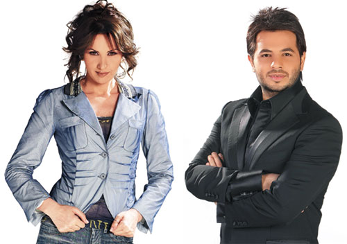 الفنانة نانسي عجرم محاطة بطفلتين معجبتين صعدتا على المسرح خلال الحفل الختامي الذي أحيته نانسي ليلة أمس الأول لعيد الفطر في دبي، وغنى في الحفل أيضاً التونسي صابر الرباعي واللبناني فارس كرم. |