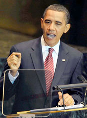 أكد الرئيس الأمريكي باراك أوباما أمس ان الولايات المتحدة تعتبر مواصلة الاستيطان في الضفة الغربية المحتلة غير شرعي. وقال في أول كلمة ألقاها أمام الجمعية العامة للأمم المتحدة: لا نزال ندعو الفلسطينيين إلى وقف الاستفزازات إزاء إسرائيل ونواصل التأكيد على ان الولايات المتحدة لا تقبل بشرعية مواصلة الاستيطان الاسرائيلي في الضفة الغربية.