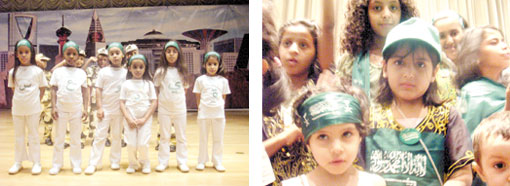 وفي جمعية الأطفال المعاقين احتفل بهذه الذكرى العزيزة على قلوبنا في اليوم الوطني والذي اشتمل على الأناشيد الوطنية والمسابقات ومشاركة الأطفال المعاقين في هذه المناسبة حيث ذكرت رئيسة الفعاليات في جمعية الأطفال المعاقين الأستاذة عبير الباز أنها قدمت العديد من مشاركات الدول العربية خلال أيام العيد وهذا اليوم مناسبة خاصة اشتملت على المشاركات الوطنية للحضور والفقرات المتنوعة الوطنية.