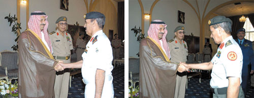 شرّف صاحب السمو الملكي الأمير خالد بن سلطان بن عبدالعزيز مساعد وزير الدفاع والطيران والمفتش العام للشؤون العسكرية صباح أمس حفل المعايدة الذي أقامته وزارة الدفاع بمناسبة عيد الفطر المبارك في نادي ضباط القوات المسلحة بالرياض بحضور معالي رئيس هيئة الأركان العامة الفريق أول ركن