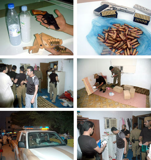 نفذت شرطة منطقة الرياض، ممثلة في قوة المهمات والواجبات الخاصة، في الفترة الماضية، حملة أمنية مكثفة على أحياء مدينة الرياض تم خلالها الكشف عن الكثير من القضايا الجنائية والقبض على مرتكبيها، وتمكنت الشرطة من ضبط تسعة أشخاص بعدة أماكن متفرقة بحوزتهم مادة الحشيش المخدر، كما ضبطت شخصين في مكانين مختلفين في حوزتهما كمية من حبوب الكبتاجون. كما تمكنت القوة من ضبط وافد عربي في سيارة من نوع أفيو لتورطه في ترويج الخمور وعثر بحوزته على أكثر من ستة وثلاثين جالوناً مليئة بالخمر. كما ضُبط ثلاثون شخصاً في أماكن مختلفة بحوزتهم أسلحة بيضاء، وضبط خمسة أشخاص داخل سياراتهم بأماكن مختلفة وعثر بحوزتهم على مسدسين وثلاث بنادق نارية وعلى ثلاثمائة طلقة نارية حية متنوعة. كما تم ضبط شخص عثر بحوزته على لوحة سيارة مسروقة، وتم كذلك ضبط وافد من الجنسية الآسيوية بعد محاولته ارتكاب الهرب من النقطة الأمنية وعثر بحوزته على مسروقات وضبط شخصان في سيارتين مختلفتين وعثر بحوزتهما على كميات من المواد الحديدية اتضح انها مسروقة من بنايات لا تزال تحت الإنشاء. كما تمكنت القوة من ضبط شخصين من جنسية عربية في سيارتهما يمتهنان التنقل بالعمالة المتخلفة والتستر عليهم وضبط برفقتهما مجموعة من العمالة المتخلفة. ونجحت القوة في ضبط شخصين سرقا سيارة صغيرة وتم ضبطهما أثناء قيادتهما السيارة المسروقة، كما تم ضبط وافد قام بالتعدي على مواطنة وتهديدها. وضبط شخصان في سيارة من نوع كامري بحوزتهما أجهزة اتصالات مشتبه بوضعها. كما ضبط شخص أثناء قيادته سيارة رسمية دون تفويض، وضبط أربعة أشخاص من الجنسية الآسيوية في شقة مشبوهة يقومون بتزوير ماركات الملابس العالمية، وضبط أربعة أشخاص من الجنسية الآسيوية بحوزتهم مبالغ مالية طائلة مجهولة المصدر، كما ضبط وافد من الجنسية الآسيوية حاول الهرب من النقطة التفتيشية وعثر بحوزته على مجوهرات ذهبية ومبالغ مالية اتضح أنها مسروقة، وضبط سبعة عشر شخصاً في حالة سكر بيّن وبحوزتهم المسكر بأماكن مختلفة وبأوضاع مشبوهة.