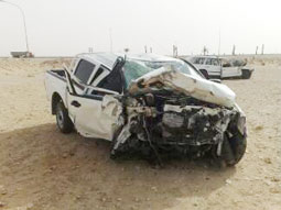 لقي خمسة أشخاص من عائلة واحدة مصرعهم فيما أصيب ثمانية آخرون بإصابات بالغة إثر حادث مروري وقع لهم جنوب محافظة رفحاء بمسافة 110 كم على طريق لينة - الرياض, حيث وقع الحادث في صباح يوم الثلاثاء الماضي بين سيارتين الأولى من نوع داتسون وبداخلها 11 شخصا جميعهم من عائلة واحدة والثانية سيارة من نوع ايسوزو بداخلها شخصان من إحدى الجنسيات العربية. نتج عن الحادث وفاة قائد السيارة الثانية وإصابة مرافقه باصابات بليغة واصابة قائد السيارة الاولى ووفاة والده وقريبته واثنين من اشقائه (اطفال) وباشر الحادث فرقة الدفاع المدني في مركز لينة وسيارة من فرقة الهلال الأحمر في مركز لينة بالإضافة إلى سيارتي إسعاف من مركز الهلال الأحمر في محافظة رفحاء ودوريات المرور وتم نقل المصابين إلى مستشفى رفحاء المركزي بعد أن تم فك احتجازهم من قبل أفراد الدفاع المدني في مركز لينة, وقد اتضح مبدئياً ان سبب الحادث السرعة الزائدة وعدم الانتباه.. ذكر ذلك ل(الجزيرة) الناطق الإعلامي بشرطة منطقة الحدود الشمالية العقيد بندر بن عطالله الإيداء.