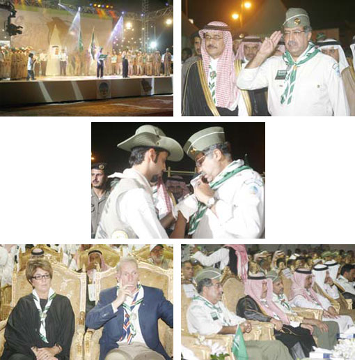وشهد الحفل محافظ الدرعية الأمير أحمد بن عبد الرحمن ونائب وزير التربية فيصل بن معمر ومحافظ المؤسسة العامة للتدريب التقني والفني الدكتور علي الغفيص ووكيل الرئيس العام لرعاية الشباب منصور الخضيري ومدير التربية والتعليم بمنطقة الرياض الدكتور عبد العزيز الدبيان وكبار القيادات في وزارة التربية والتعليم وجمعية الكشافة إلى جانب رئيس الصندوق الكشفي، والأمين العام للمنظمة الكشفية العربية وعدد من قادة كشافة دول مجلس التعاون، والقى الدكتور عبد الله بن سليمان الفهد نائب رئيس الجمعية كلمة نوه فيها بجهود وزارة التربية والتعليم في دعم الجمعية، مشيرا إلى أن الاحتفال الذي يقام تحت شعار (أنا الوطن) يهدف إلى تعزيز قيم الانتماء الوطني لدى الكشافين، وتفعيل الأنشطة الكشفية في مجال التربية الوطنية، وتقديم نماذج عملية لأنشطة الاحتفاء باليوم الوطني، وإبراز دور الكشافة في التربية الوطنية وخدمة الوطن.