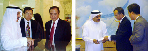 وكان في استقبال الوفد الصيني الدكتور عبدالكريم بن عبدالرحمن الزيد نائب المشرف العام على المكتبة والذي رحب بأعضاء الوفد واصطحبهم في جولة للتعرف على مقتنيات المكتبة من الكتب والوثائق والمخطوطات وما ينفذ في جميع أقسامها من برامج وأنشطة ثقافية وعلمية..