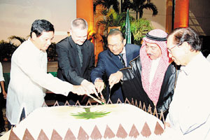 أقامت سفارة خادم الحرمين الشريفين لدى جهورية الفلبين حفل استقبال بمناسبة اليوم الوطني التاسع والسبعين للمملكة العربية السعودية وقد كان في مقدمة مستقبلي الضيوف سعادة سفير خادم الحرمين الشريفين لدى جمهورية الفلبين الأستاذ محمد أمين ولي وأعضاء السفارة ورؤساء المكاتب السعودية التابعة للسفارة وذلك في فندق سوفتيل في العاصمة مانيلا وقد شارك في هذه المناسبة من الحكومة الفلبينية السكرتير التنفيذي للرئيسة السيد ادواردو ارميتا وعدد من أعضاء البرلمان الفلبيني من رؤساء الكتل البرلمانية من المسلمين والمسيحيين وعدد من الوزراء يتقدمهم معالي وزير العدل ووزيرة العمل والمواصلات وأعضاء مجلس الشيوخ الفلبيني وزعماء المسلمين يتقدمهم معالي رئيس مجلس الحكم الذاتي ورئيس شئون المسلمين السيد على سنكي وعميد السلك السياسي في الفلبين وكافة أعضاء ورؤساء البعثات الدبلوماسية والمنظمات الدولية المعتمدة لدى الفلبين وعدد كبير من المقيمين ورجال الأعمال ورؤساء الغرف التجارية في الفلبين، وعدد كبير من المواطنين السعوديين المتواجدين في الفلبين والجالية السعودية المقيمة في الفلبين وشاركت الخطوط السعودية بجناح خاص لها وقامت بتوزيع بعض الهدايا.هذا وقد تم إعداد برنامج للحفل تخلله في مداخل الفندق معرض يحتوي على صور عن المملكة وتراثها وقد تم بناء مجسم كبير لقصر المصمك عرض بداخله شاشات عملاقة تحتوي على أفلام وثائقية عن رقي بلادنا الحبيبة والذي كان محل استحسان كافة الحضور والذي ابرز أهمية ومكانة المملكة العربية السعودية على المستوى العالمي والإقليمي وتاريخ المملكة حتى وقتنا الحاضر والنهضة التي تعيشها المملكة. وفي ختام العرض تم التركيز على العلاقات الفلبينية السعودية المميزة.