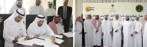 وقعت جامعة الملك فهد للبترول والمعادن والشركة السعودية العالمية للبتروكيماويات (سبكيم) ووزارة البترول والثروة المعدنية مذكرة تفاهم لتأسيس مركز أبحاث تطوير تقنيات وتطبيقات منتجات البوليمرات بمبلغ إجمالي يقدر بـ(80) مليون ريال سعودي على مساحة تبلغ خمسة عشر ألف متر مربع لإنشاء المركز في وادي الظهران للتقنية التابع للجامعة، وذلك ظهر يوم أمس الأحد بمقر الجامعة بالظهران، فيما ستتولى شركة سبكيم إدارة وتشغيل وصيانة المركز، والذي يهدف إلى تطوير تقنيات وتطبيقات منتجات البوليمرات وتحسين أسس الإنتاج التي تستخدم في كثيرٍ من الصناعات مع التركيز على الاستخدامات الرئيسية للمنتجات وهي الأفلام والتي تدخل في صناعة خلايا الطاقة الشمسية والأغطية الرقيقة للاستخدامات الزراعية والأنابيب المرنة والمواد اللاصقة اللازمة لصناعة الأخشاب والأوراق والأصباغ، والكابلات للكهرباء والاتصالات ومنها كابلات الألياف الضوئية، وغير ذلك من المنتجات التي ستدعم البرنامج الوطني لتطوير التجمعات الصناعية. كما سيُسهم المركز في تعزيز سبل التعاون في مجال الأبحاث باستخدام المختبرات والأجهزة وتبادل الخبرات بين الجامعة وشركة سبكيم.