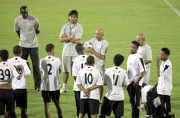 حيث أخضع المدير الفني للفريق البرتغالي جايمي باتشيكو لاعبيه لتمرين تكتيكي تمثل في تقسيم اللاعبين لأربع مجموعات والقيام بمناورة في وسط الملعب ومنح مبدأ المناورة بين المجموعات الأربع.