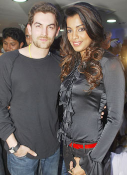 الممثلة الهندية موجهدا جودسي والممثل نيل نيتين موكيش يشاركان في حفل ترويجي لفيلمهما الجديد (Jail) أقيم في موبياي. |