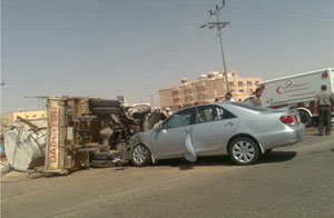 وقد أدى الحادث إلى انقلاب شاحنة البلدية فيما اصيب العامل الذي كان يقودها والمعلمين الثلاثة باصابات متفرقة نقلوا على اثرها لمركز صحي ظلم وبعد إجراء الاسعافات اللازمة تم تحويل اثنين من المصابين لمستشفى الخرمة العام، وقد باشرت الحادث دوريات المرور وشرطة ظلم.