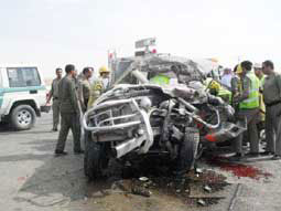 باشرت فرقتا إطفاء وإنقاذ حادث تصادم بين سيارة جيب تايوتا مواطن وقلاّب يقوده مقيم، وقد أسفر الحادث عن احتجاز قائد السيارة الجيب ووفاته، حيث قامت فرق الدفاع المدني بإخراج المتوفى من مركبته، فيما أصيب قائد القلاّب بإصابات طفيفة نقل على أثرها للمستشفى لتلقي العلاج.