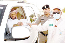 نفذت المفوضية الكشفية بقطاع سدير توزيع الحقيبة التوعوية لوباء H1N1 بحوطة سدير وروضة سدير عند الإشارات المرورية بمشاركة 20 كشافا وبمرافقه القادة الكشفيين سعد المنصور وعلي السعداني وخالد الدليهان وذلك بتعاون مع مرور الحوطة ممثلاً بمدير القسم المكلف رئيس رقباء مقرن الوايلي، حيث تم توزيع 200 حقيبة في حوطة سدير و150 في روضة سدير وتحتوي هذه الحقيبة على العديد من المطويات والإرشادات والعبارات الإرشادية ومعقم ومنديل وكمامة، ذكر ذلك رئيس القسم الكشفي بإدارة التعليم بمحافظة المجمعة علي العلي والمشرف على مشاركه الكشافة في هذه الحملة حيث أوضح أن الحملة نفذت في المفوضيات الكشفية الأربع المجمعة وسدير والارطاوية وتمير وبمشاركة قادة المفوضيات و80 كشافا حيث تم توزيع 950 حقيبة في وقت قياسي.