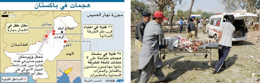 قتل ما لا يقل عن12شخصا أمس الجمعة في اعتداء وقع قرب مقر الشرطة الجنائية في حي عسكري في بيشاور شمال غرب باكستان، وفق حصيلة جديدة أصدرتها الشرطة، وهو سادس اعتداء يقع في باكستان في غضون 12 يوما شهدت أيضا سلسلتين من الهجمات الجريئة استهدفت المقر العام للجيش قرب إسلام اباد وثلاثة مراكز للشرطة في لاهور شرق البلاد. واوقعت سلسلة الاعتداءات هذه التي تبنت حركة طالبان معظمها ما يزيد على 170 قتيلا.وقال الضابط في الشرطة اصغر حسين في اتصال هاتفي بوكالة فرانس برس انفجرت القنبلة في الحي العسكري قرب مبنى لوكالة التحقيقات المركزية (الشرطة الجنائية). وقال ضابط آخر في الشرطة محمد غول في اتصال هاتفي مع وكالة فرانس برس من المستشفى الحكومي الرئيسي في بيشاور (احصينا 12 جثة و13 جريحا في قسم الطوارئ في المستشفى).