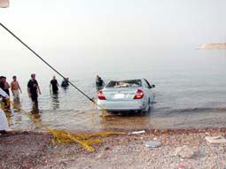 انتشل رجال حرس الحدود بحقل ظهر أمس الجمعة سيارة من نوع كامري كانت قد دلفت إلى مياه البحر في منتزه الحميضة بشواطئ حقل، حيث ارتجل ركابها منها قبل انطلاقها من خلال منطقة منحدرة لتستقر في عمق البحر. وهرعت فرقة الإنقاذ التابعة لقطاع حرس حدود حقل للموقع وقام الغواصون بالنزول لأعماق البحر لربط السيارة ومن ثم سحبها باستخدام معدات حرس الحدود بحقل. الجدير بالذكر بأن هذا الشاطئ شهد غرق العديد من السيارات آخرها سيارة لاندكروزر كان بداخله طفلان حيث أنقذ الطفلان وتم استخراج السيارة.