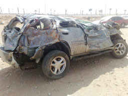 أدى انقلاب سيارة شرق محافظة رفحاء بمسافة 95 كم على الطريق المؤدي لمحافظة حفر الباطن، والسيارة من نوع جمس (انفو) تحمل لوحة خليجية يقودها وافد عربي الجنسية (43 سنة) يرافقه ابنه (8 سنوات) وزميله (24 سنة)، إلى وفاة زميله المرافق له وإصابة السائق وابنه بإصابات، فتم إسعافهما ونقلهما من قبل الهلال الأحمر إلى مستشفى رفحاء المركزي، كما أُدخل جثمان المتوفى ثلاجة المستشفى حتى حضور ذويه لاستلامه. كما نتج عن الحادث تلفيات جسيمة بالسيارة. وقد باشر الحادث مرور رفحاء والدفاع المدني والهلال الأحمر. ذكر ذلك الناطق الإعلامي بشرطة منطقة الحدود الشمالية العقيد بندر الإيداء، مبينا أنه قد اتضح مبدئياً أن سبب الحادث هو السرعة الزائدة وعدم اليقظة التامة نظراً للسير مسافات طويلة دون أخذ قسط من الراحة. مذكرا جميع قائدي السيارات بالانتباه واليقظة وعدم قيادة السيارة عند الشعور بالإرهاق أثناء السير أو السفر لمسافات طويلة.