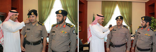 قلَّد وكيل محافظة المجمعة محمد بن عامر الخرصان الثلاثاء الماضي عدداً من الضباط رتبهم الجديدة بعد صدور الأمر السامي الكريم بترقيتهم؛ وذلك فى مكتبه بمقر المحافظة بحضور مدير شرطة المحافظة العقيد ناصر بن عبد العزيز الغانم، حيث تم تقليد النقيب فيصل إبراهيم التركي رئيس قسم الحقوق بشرطة المحافظة رتبتة الجديدة (رائد) والملازم أول يوسف بن محمد الشبانات قائد دوريات أمن طريق الشمال رتبته الجديدة (نقيب)، وقد هنأ وكيل المحافظة الضابطين وتمنى لهما التقدم والنجاح.