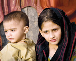 نازحة باكستانية تحمل طفلاً رضيعاً هاربة به إلى منطقة آمنة بعيدة عن مناطق الصراع الباكستاني مع طالبان في الحدود الجنوبية من العاصمة الباكستانية إسلام آباد. |