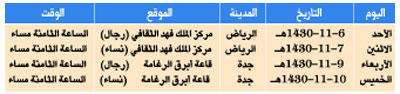 برعاية معالي وزير الثقافة والإعلام الدكتور عبدالعزيز محي الدين خوجة ومعالي وزير الثقافة الكازاخستاني الدكتور مختار قول محمد تفتتح يوم الأحد 6-11- 1430هـ الأيام الثقافية الكازاخستانية في المملكة وذلك في مركز الملك فهد الثقافي الساعة الثامنة مساء، حيث تشتمل الأيام الثقافية التي تستمر حتى 10-11- 1430هـ على العديد من الفعاليات التي تتميز بها جمهورية كازاخستان، إضافة إلى معرض للفنون التشكيلية وآخر للتصوير الضوئي وكذلك عروض للفنون الشعبية الكازاخستانية.