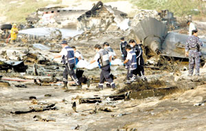 وقال مدير عام الطيران المدني في الإمارة الشيخ خالد القاسمي لوكالة فرانس برس إن الطائرة من نوع بوينغ 707 أمريكية الصنع، وقال إنها تحطمت على أرض صحراوية خالية ولم تسجل أي أضرار على الأرض في حين قتل طاقمها المكون من ستة أشخاص.