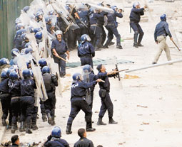 لا تزال المواجهات مستمرة بين قوات الأمن الجزائرية، وشبان يحتجون على ظروف سكنهم السيئة في أحياء فقيرة بالعاصمة أسفرت عن إصابة 11 شرطيا بجروح حسب تقرير لوكالة الأنباء الفرنسية. وبدأت الاشتباكات الثلاثاء في حي المدنية الشعبي قرب وسط العاصمة وعلى بعد مئات الأمتار من نصب الشهداء، كما وقعت احتجاجات مماثلة يوم الاثنين في منطقة ديار شميس العمالية، التي تبعد قرابة كيلومترين من القصر الرئاسي. وقد ألقى الشبان الغاضبون الحجارة وزجاجات حارقة تجاه قوات الأمن التي أغلقت المنطقة وتصدت لهم بخراطيم المياه وقنابل الغاز المسيلة للدموع وذكرت مصادر طبية أن حوالي 50 شخصا قد أصيبوا بجروح. وقد بدأت المواجهات عندما توجهت قوات الأمن وبناء على أمر قضائي، لإزالة مساكن عشوائية، أقيم بعضها على ملعب لكرة القدم في حي (صالومبي)، فيما شرعت قوات الأمن بإغلاق الحي -كاملا- لمنع المحتجين من التقدم إلى حي قريب توجد فيه مصارف ومؤسسات عامة وخاصة ومقر إحدى الوزارات.