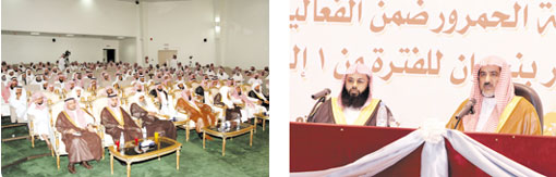 واستطرد معاليه قائلاً: إن خطباء المساجد وأئمة المساجد فانه عليهم ما ليس على غيرهم، وهذا يعني أنه من المطلوب دائما علينا جميعا وعليكم وعلى كل منتسب بهذا المجال أن يراجع نفسه بين الحين والآخر، وأن نتوخى الخير دائما من الإمام والخطيب بما فيه النفع العام، وتحقيق المصالح العليا، والامتثال لأمر الشارع الحكيم، ولهذا كان من صفات الإمام والخطيب أن يكون نقي القلب مخلصا لله جل وعلا، وأن يحرص على الاحتساب في عمله في المساجد والجوامع مؤكداً معاليه أن العمل في المسجد كخطيب أو إمام أو مؤذن ففيه الاحتساب.