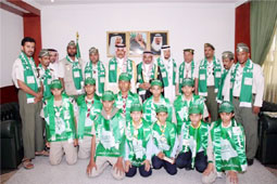 استقبل سمو محافظ المجمعة الأمير عبدالرحمن بن عبدالله بن فيصل آل سعود بمقر مكتبه بديوان المحافظة مدير التربية والتعليم رئيس المكتب الكشفي بمحافظة المجمعة الدكتور موسى بن عيسى العويس ورئيس قسم النشاط الطلابي بإدارة التربية والتعليم محمد الشيحة ورئيس قسم النشاط الكشفي علي العلي ومجموعة من القادة الكشفيين ومجموعة من كشافة وأشبال المحافظة؛ وذلك بمناسبة الاحتفاء باليوم الوطني وحصول كشافة المحافظة على دروع التفوق وأوسمة التميز على مستوى المملكة في مهرجان الاحتفاء باليوم الوطني الذي أُقيم مؤخراً في محافظة الدرعية.