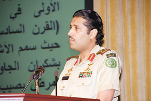 ألقى صاحب السمو الملكي العميد الطيار الركن الدكتور نايف بن أحمد بن عبد العزيز آل سعود رئيس فريق الخبراء السعودي المعني بتنفيذ اتفاقية حظر الأسلحة البيولوجية على المستوى الوطني, محاضرة بعنوان (الأسلحة البيولوجية نشأتها وتطورها وتأثيرها على المدنيين) وذلك خلال ورشة العمل الخاصة باتفاقية حظر الأسلحة البيولوجية والتي نظمتها وزارة الخارجية في قاعة الأمير سلمان بمستشفى الملك فيصل التخصصي ومركز الأبحاث الثلاثاء الماضي حيث ألقى سموه خلال هذه المحاضرة الضوء على الأسلحة البيولوجية وأنواعها ومراحل نشأتها وتطورها منذ فترة ما قبل الميلاد وحتى عصرنا الحاضر, وذكر أمثلة على استخدامها خلال الحروب إبان الفترة الماضية, وبين في هذه المحاضرة الاستخدامات لهذه الأسلحة البيولوجية في العصر الحديث وذكر عدداً من الأمثلة لاستخدامها من قبل بعض الجماعات الإرهابية في العصر الحاضر مدعماً ذلك بالصور الفوتوغرافية والأفلام المصورة. وفي ختام هذه المحاضرة أبرز سموه حرص حكومة المملكة العربية السعودية على التعايش السلمي والتعاون بينها وبين دول العالم لما فيه مصلحة البشرية والمحافظة على مكتسباتها وإمكانياتها ورغبتها في المشاركة في إحلال السلام والأمن.