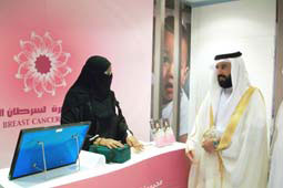 اختتمت مساء أمس الحملة التوعوية بسرطان الثدي بمدينة تبوك التي تقيمها جمعية زهرة لسرطان الثدي بالتعاون مع مستشفيات القوات المسلحة بالشمالية الغربية بتبوك وذلك بمجمع الحكير التي افتتحها مدير مستشفى القوات المسلحة بالشمالية الغربية العميد الطبيب غالب غالب بن حريب, وتأتي الحملة ضمن جهود الجمعية والمستشفى للتوعية بسرطان الثدي الذي يعتبر شهر أكتوبر الشهر العالمي للتوعية بهذا المرض حيث قامت الطبيبات والمثقفات الصحيات بتدريب الزائرات على أساليب الفحص الذاتي للثدي وتوزيع النشرات والمطبوعات التوعية.