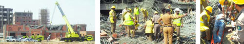 لقي عامل مصرعه أمس الجمعة فيما أصيب 7 آخرون إثر انهيار سقف مسجد تحت الإنشاء بحي المنار بجدة وذلك أثناء عملية صب الخرسانة للسقف المحدد مساحته بـ 750م. وقد باشرت آليات الدفاع المدني أعمالها في الموقع لاستخراج جثة العامل من تحت الأنقاض باستخدام إحدى الرافعات الكبيرة إضافة إلى (شيول) استخدم، فيما أعلن الدفاع المدني حالة البلاغ الأصفر بالتعاون مع الشئون الصحية.
