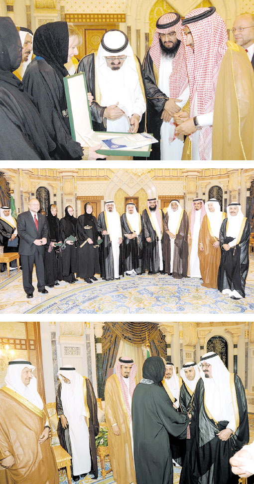 استقبل خادم الحرمين الشريفين الملك عبدالله بن عبدالعزيز آل سعود - حفظه الله - في مكتبه بالديوان الملكي في قصر اليمامة أمس معالي وزير التعليم العالي الدكتور خالد بن محمد العنقري يرافقه معالي مدير جامعة الملك سعود الدكتور عبدالله بن عبدالرحمن العثمان ووكلاء الجامعة والفريق البحثي