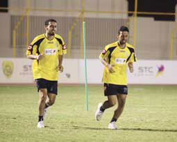 اكتفى يوسف الموينع لاعب محور الارتكاز النصراوي وزميله في نفس المركز أحمد عباس بالدوران حول المضمار في مستهل التدريبات الصفراء يوم أمس بعد إجازة الأيام الثلاثة التي تمتع بها اللاعبون من بعد فوزهم على الخور القطري (3-1) وتأجيل مباراتي الفريق أمام الوحدة والاتحاد لحساب الدوري، وشهد المران غياب المدافع البرازيلي إيدر الذي مددت إجازته مع كميل الوباري يوما إضافيا.