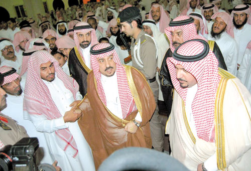 وقد أدى الصلاة مع سمو أمير القصيم ونائبه كل من مدير عام الشؤون الصحية بمنطقة القصيم الدكتور صلاح الخزاز ومدير شرطة منطقة القصيم اللواء عبد القادر طلحة وجموع من المواطنين من أبناء المنطقة.