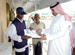 وبين المهندس أسره أن خطوات الاستقبال تبدأ بدخول الحافلة إلى المسارات العشرة المخصصة لها وبمجرد وصول الحافلة وتوقفها يباشرها المنسق الميداني الذي يتولى الإشراف على مسارين من العشرة ثم يوجه أحد المرشدين لمتابعة السائق وإيصاله إلى شباك رصد البيانات للتأكد من صحتها ومطابقة عدد الجوازات بحضور السائق ثم يستلم المرشد بيان المغادرة مع الخريطة والجوازات بعد المطابقة ويرافق السائق إلى الحافلة للتشييك النهائي على عدد الحجاج ثم المغادرة إلى مجموعة الخدمة ويتم ذلك في وقت قياسي يرصده المنسق الميداني الذي يسجل وقت دخول الحافة ووقت خروجها.