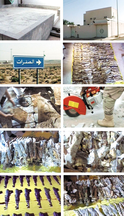 كشف المتحدث الرسمي بوزارة الداخلية اللواء المهندس منصور التركي بأن التحقيقات القائمة مع عناصر هذه الشبكة توصلت إلى معلومات كشفت عن حيازتهم لكمية كبيرة من الأسلحة والذخيرة قاموا بإخفائها في استراحة تعود لأحدهم وتقع في إحدى محافظات منطقة الرياض، وذلك داخل مخبأ أنشئ من الخرسانة المسلحة بارتفاع نصف متر عن الأرض وهيئ على أنه مكان للجلوس بغرض التمويه، وبعد استخراجها وضبطها اتضح أنها عبارة عن مائتين وواحد وثمانين رشاشاً من نوع كلاشنكوف، ومائتين وخمسين مخزناً، وخمسة وخمسين صندوق ذخيرة تحتوي على واحد وأربعين ألفاً ومائتين وخمسين طلقة. ولا تزال التحقيقات مستمرة لاستظهار كافة الحقائق المحيطة بنشاطات تلك الشبكة.