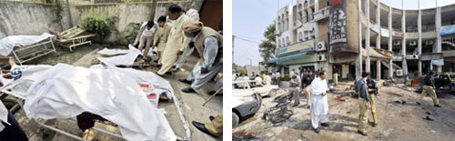 وقال وزير الاعلام قمر زمان خيرا خلال مؤتمر صحافي ان 35 شخصاً قتلوا في الانفجار واصيب اكثر من 60 بجروح. وكان وقع الانفجار شديداً لدرجة ان جثثا تطايرت إلى مسافة تزيد عن خمسين متراً. وفي وقت لاحق ادت عملية انتحارية مزدوجة على مركز مراقبة للشرطة إلى اصابة سبعة اشخاص في لاهور (شرق) ثاني مدن باكستان. وحسب مصادر في الشرطة وقع الهجوم عند جسر بابو سابو على مدخل المدينة الواقعة شرق باكستان المؤدي ايضا إلى اسلام اباد وبيشاور شمال غرب البلاد. وقال قائد شرطة المدينة برويز راتور للصحافيين: توقفت سيارة عند حاجز وعندئذ فجرها الانتحاريان اللذان كانا يستقلانها. وفي الوقت نفسه اعلن الجيش الباكستاني سيطرته على مدينة كانيغورام التي تعتبر من المعاقل الرئيسية لحركة طالبان الباكستانية في ولاية وزيرستان الجنوبية، شمال غرب باكستان. وأكد الناطق باسم الجيش الجنرال اطهر عباس في مؤتمر صحافي في اسلام اباد بأنه تم تطهير كانيغورام تماما من الارهابيين. وقال: بعد القيام بمداهمات من منزل إلى منزل، طهرنا المدينة من الالغام والعبوات اليدوية الصنع. كما ضبطنا كميات كبيرة من الاسلحة والذخائر.