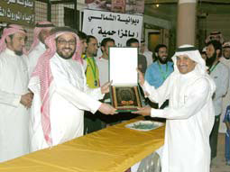 وفي نهاية التتويج، كرما الاتحاد السعودي للرياضة للجميع الزميل عبد الكريم الشمالي عضو المجلس البلدي في المزاحمية وراعي البطولة بدرع تقديري نظير دعمه ورعايته للدورة التي أسهمت في تعريف شباب الوطن بموروثهم الشعبي.