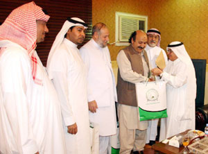 استقبل رئيس مجلس إدارة المؤسسة الأهلية للأدلاء بالمدينة المنورة الدكتور يوسف حوالة السفير الباكستاني لدى المملكة السيد عمر خان شيرزي وقنصل الحج السيد بحر الله هزاروي ونائب القنصل رئيس بعثة الحج بالمدينة السيد أمجد علي، وذلك بقاعة الاجتماعات بالمؤسسة، وأكد السفير الباكستاني أن هذا اللقاء ساهم في دعم وتوثيق استمرار العلاقات التنسيقية التي تربط البعثة مع المؤسسة لخدمة الحجاج الباكستانيين ومناقشة الأمور الخاصة بالحجاج.. وشكر السفير الباكستاني المؤسسة على خدماتها للحجاج.. من جانبه أكد د. حوالة أنه تم خلال اللقاء حثّ جميع العاملين بالمؤسسة على مضاعفة الجهود والتفاني في العمل لخدمة وراحة ضيوف الرحمن.