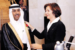 في حفل أقيم في نزل سفير الجمهورية الفرنسية لدى السعودية بالحي الدبلوماسي في الرياض قامت وزيرة شئون التجارة الخارجية الفرنسية السيدة أن ماري إيدراك نيابة عن رئيس الجمهورية الفرنسية بتقليد المهندس خالد بن أحمد بالخيور الرئيس التنفيذي لعرب سات وسام الشرف برتبة فارس تقديرا لجهوده