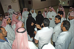 وقد حرصت الدكتورة العصيمي على تفقد أقسام التنويم الداخلية بقسميها الرجالي والنسائي والتقت الطاقم التمريضي من المناوبين ووقفت على ما يقومون به من أعمال بشكل مباشر، وناقشت معهم بعض الأمور المتعلقة بسير العمل والخطط والإجراءات المتبعة ومدى مطابقتها وملاءمتها لسياسات وإجراءات العمل التمريضي المتخصص في الصحة النفسية.