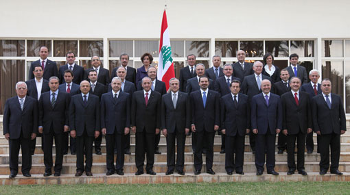 عقدت الحكومة اللبنانية الجديدة أول جلسة لها في القصر الجمهوري برئاسة رئيس الجمهورية ميشال سليمان وحضور رئيس الحكومة سعد الحريري والوزراء، الذين غاب منهم وزير الشؤون الاجتماعية سليم الصايغ بسبب اعتراض حزبه الكتائب على (نوعية الحقيبة المسندة إليه). وقد انتهت الجلسة إلى تأليف لجنة لإعداد البيان الوزاري تضم 12 وزيراً هم: بطرس حرب، طارق متري، محمد فنيش، جان أوغاسابيان، وائل أبو فاعور، زياد بارود، جبران باسيل، علي الشامي، سليم الصايغ، ريا حفار، يوسف سعادة وشربل نحاس. وستجتمع اللجنة عند الأولى بعد ظهر اليوم الأربعاء في السراي الحكومي.
