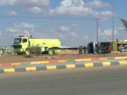 وقد باشر الدفاع المدني الحادث حيث قام برش رغوة لمنع اندلاع حريق، كما قامت دوريات المرور بتغيير مسار السيارات إلى أن تم سحب الناقلة وفتح الطريق.