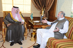 استقبل صاحب السمو الملكي الأمير فيصل بن خالد بن عبدالعزيز -أمير منطقة عسير- بمكتبه في الإمارة أمس السفير الباكستاني لدى المملكة السيد عمر خان علي شيرازي وجرى خلال اللقاء بحث العديد من الموضوعات المختلفة وعلاقة البلدين الشقيقين وسبل دعمها وتنميتها في شتى المجالات، وفي ختام اللقاء قدم أمير عسير هدية تذكارية للسفير الباكستاني الذي قدم بدوره هدية مماثلة لأمير عسير.