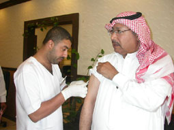 دشّن مدير الشؤون الصحية بمحافظة الأحساء حسين الرويلي أمس بمكتبه حملة التطعيم ضدّ إنفلونزا الخنازير (A H1N1)، مبتدئاً بنفسه في أخذ اللقاح، ويأتي ذلك تعزيزاً لما بدأه معالي وزير الصحة الدكتور عبد الله بن عبد العزيز الربيعة لتطمين الناس بسلامة اللقاح، وأنه لا ضرر منه.