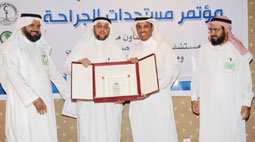 كما أعرب الدكتور الخراز في كلمة له عن اعتزازه وافتخاره بالتعاون مع المستشفيات التي يأتي في مقدمتها مستشفى الملك فيصل التخصصي، متمنياً كل التوفيق والنجاح والاستفادة من مخرجات هذا المؤتمر، كما شكر كافة المساهمين في هذه الفعاليات. بعد ذلك تم تكريم المشاركين في المؤتمر وتوزيع الدروع والشهادات.