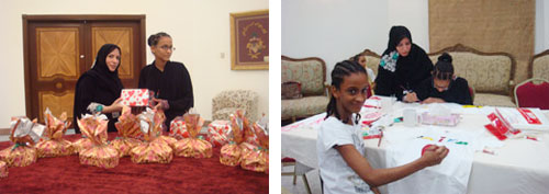 بعدها قدمت فرقة اتوز للفتيات في نادي موهبتي لدعم اليتيم مجموعة من المسابقات الترفيهية والورش التدريبية على الحرف اليدوية كالطباعة على التشرتات والكتابة على الأكواب وتلوينها والتي تهدف إلى تفعيل النشاط الفكري وتنمية المهارات الحركية.. وفي ختام الحفل وزعت الأستاذة لطيفة أبو نيان الهدايا على فتيات الدور الاجتماعية المشاركات في البرنامج.. وبهذه المناسبة صرحت للجزيرة المديرة العامة للإشراف النسائي الاجتماعي بالرياض الأستاذة لطيفة أبو نيان أن أرامكو كقطاع مميز يتبع للدولة ساهمت مع وزارة الشؤون الاجتماعية منذ فترة طويلة.. وقد اختلفت الرؤية التي كانت تعتمد في الوزارة على تقديم الرعاية الاجتماعية للبنات لتتعداها إلى تأهيلهن وإعدادهن للمجتمع وتقديم المشاريع التي تحتاج إلى دعم وتكون بداية انطلاقة للبنات اللاتي هن بحاجة إليها وأرامكو تساعدنا في تلك البرامج التي سعدت بها بناتنا، وهذا يأتي من مبدأ الشراكة بين القطاعات المختلفة في بلدنا المعطاء.. وأتقدم لشركة أرامكو وللمشاركات بالشكر على اهتمامهم بتفعيل المسئولية الاجتماعية.. وتضيف مدير دار الطفولة سمهي الغامدي أنها أول مشاركة تهدف إلى دعم اليتيم, وقد أبدى كثير من فتيات الدور سعادتهن بالبرنامج.. وتشير نسرين إحدى فتيات الدار إلى أن الوزارة ساعدتها على تنفيذ فكرتها بفتح محل تجاري بدعم من برنامج عبد اللطيف جميل.. أما رشا فقد التحقت بأكاديمية الفيصل تخصص إنجليزي بينما تقدم سارة وشروق ورشاً وبرامج ترفيهية لبنات الدور.. وهذا يدل على المواهب التي تختزلها تلك الدور لتخرج نماذج فاعلة تساهم في نهضة وطننا الغالي.. كل الشكر لوزارة الشئون الاجتماعية التي تحتضن نماذج مشرقة من أبناء وبنات الدور الاجتماعية.