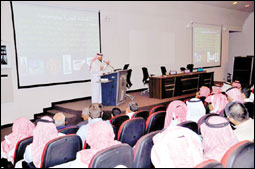 وتمت إقامة المحاضرة في قاعة المحاضرات الكبرى بالسنة التحضيرية بحضور عدد كبير من الطلاب. وقدم الزهراني في بداية المحاضرة تعريفا بالاختراع، وان براءة الاختراع حق امتياز خاص يمنح بشكل رسمي للمخترع في فترة زمنية محددة.