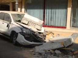 وكانت رافعة كبيرة تحمل شحنة الرمل والاسمنت من أرضية الشارع إلى أعلى العمارة فارتطمت بالسور العلوي بالخطأ لتسقط كتل أسمنتية وقطع بلك على سيارة من نوع لكزس جيب كان داخلها السائق الذي نجا بفضل الله من موت محقق، وقد أحدث سقوط هذه المواد صوتاً هائلا دفع أصحاب المحلات والمتسوقين للخروج من المحلات, ولحسن الحظ أنه لم يكن هناك أحد من المارة أسفل العمارة أثناء الحادث.