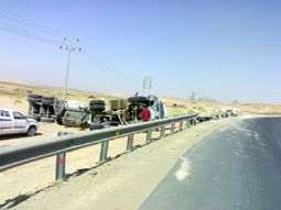 عابرو طريق بريدة - الطرفية بات لا يفارقهم الخوف والهلع المستمران مما يشكله المنحنى الجبلي الخطير بما يسمى (طلعة الطرفية)، حيث لا تزال تتربص بسالكي الطريق من السيارات الصغيرة والكبيرة معاً وخاصة لمن يسلك الطريق لأول مرة ويتفاجأ بمنحدرات ومنحنيات خطيرة جداً وخالية من وسائل السلامة التي تهدئ من السرعة المرورية لقائدي المركبات، وقد كان آخر ضحايا حوادث هذا الموقع شاحنة كبيرة انقلبت أمس الاول وكانت محملة بأسمنت (مقاوم) حيث كان السائق باتجاه بريدة وهو في انحدار شديد مع انعطاف للطريق مما جعله يفقد السيطرة على المركبة وانقلبت على اليمين وخرج بحمد الله سالماً سوى كدمات بسيطة نقل على إثرها للمستشفى مباشرة.