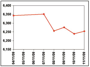 رغم حالة الخوف والقلق السائدة ورغم أن البعض يعتبر المؤشر قد دخل في مسار هابط منذ أسبوعين، إلا إن أداء السوق ككل يوضح أن غالبية الأسهم سارت في مسار تذبذبي ضيق، بحيث أن نسبة 90% من الأسهم المتداولة في السوق لم تزد درجة ربحيتها أو خسارتها عن 5%، وبالتالي فإنه رغم معاناة السوق من حالة ركود في السيولة المتداولة، إلا إنه لا يزال يسير داخل النطاق الضيق الصاعد الذي يسير فيه منذ شهرين، حيث أنه لا يزال رابحا نحو 9.5% على مدى الشهرين الأخيرين.
